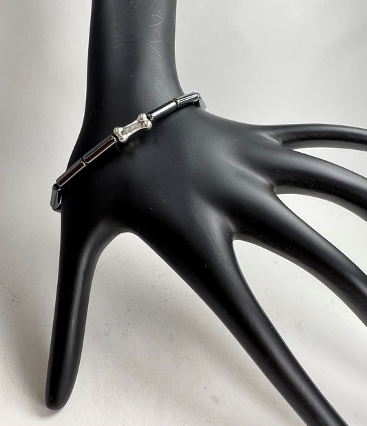 Silver BONE Dog, Pet, Dinosaur... Hematite Bracelet